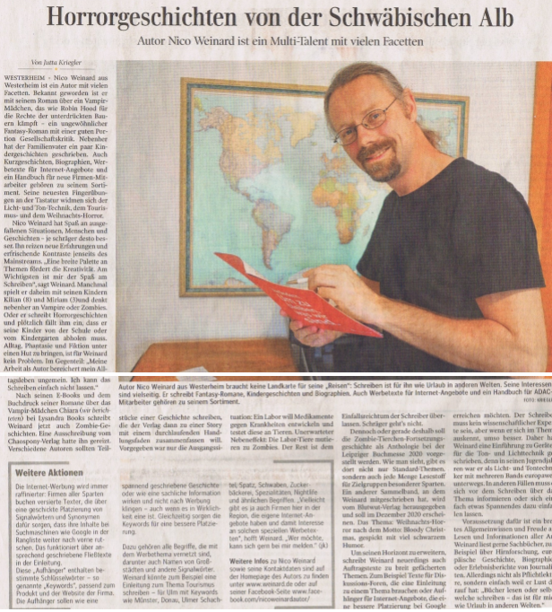 Horrorgeschichten von der Schwäbischen Alb – Autor Nico Weinard ist ein Multitalent mit vielen Facetten