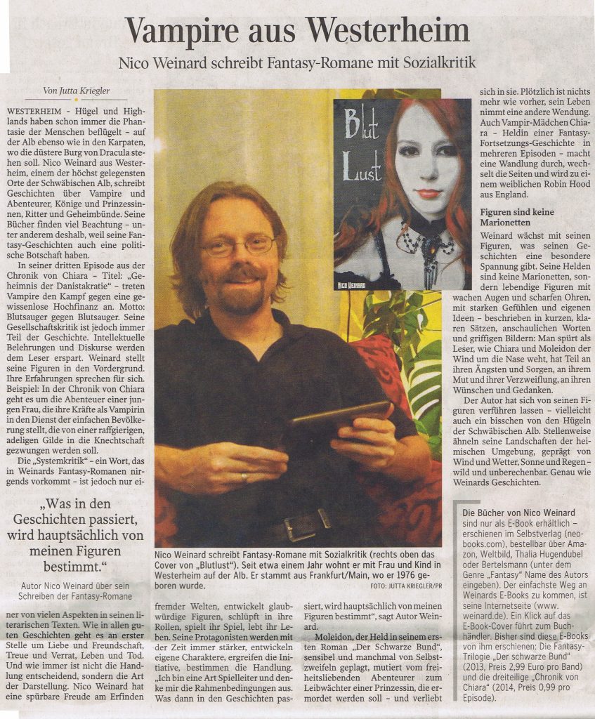 Präsentiert von Jutta Kriegler von der Schwäbischen Zeitung las ich zuerst aus meiner aktuellen Vampir-Reihe Chronik von Chiara und stellte mich anschließend im Interview den Fragen des Publikums.